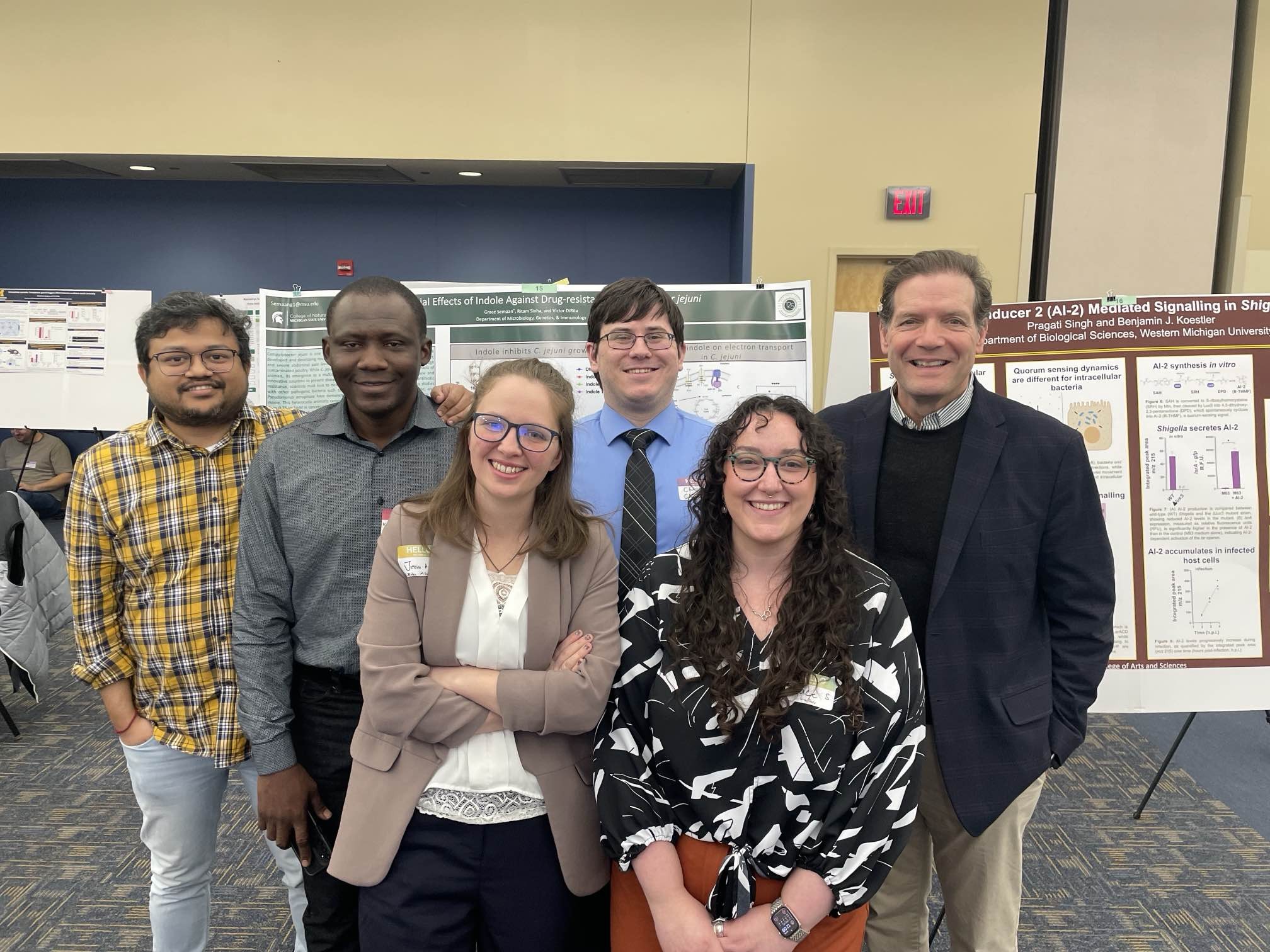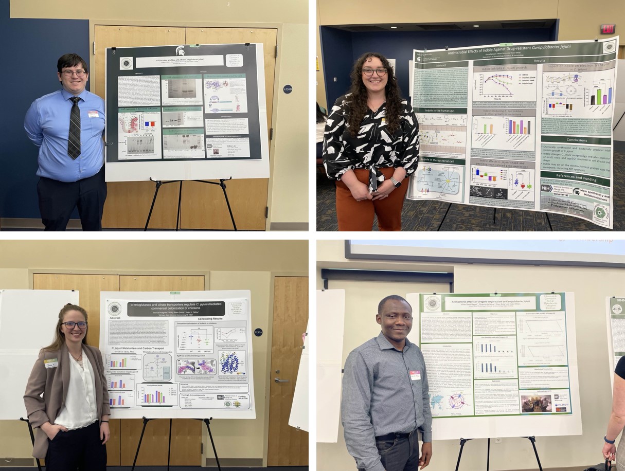 Right photo: Group posing with Rowan's poster. Left to right: Kefas, Vic, Rowan, Dylan, Ritam, Rhia.